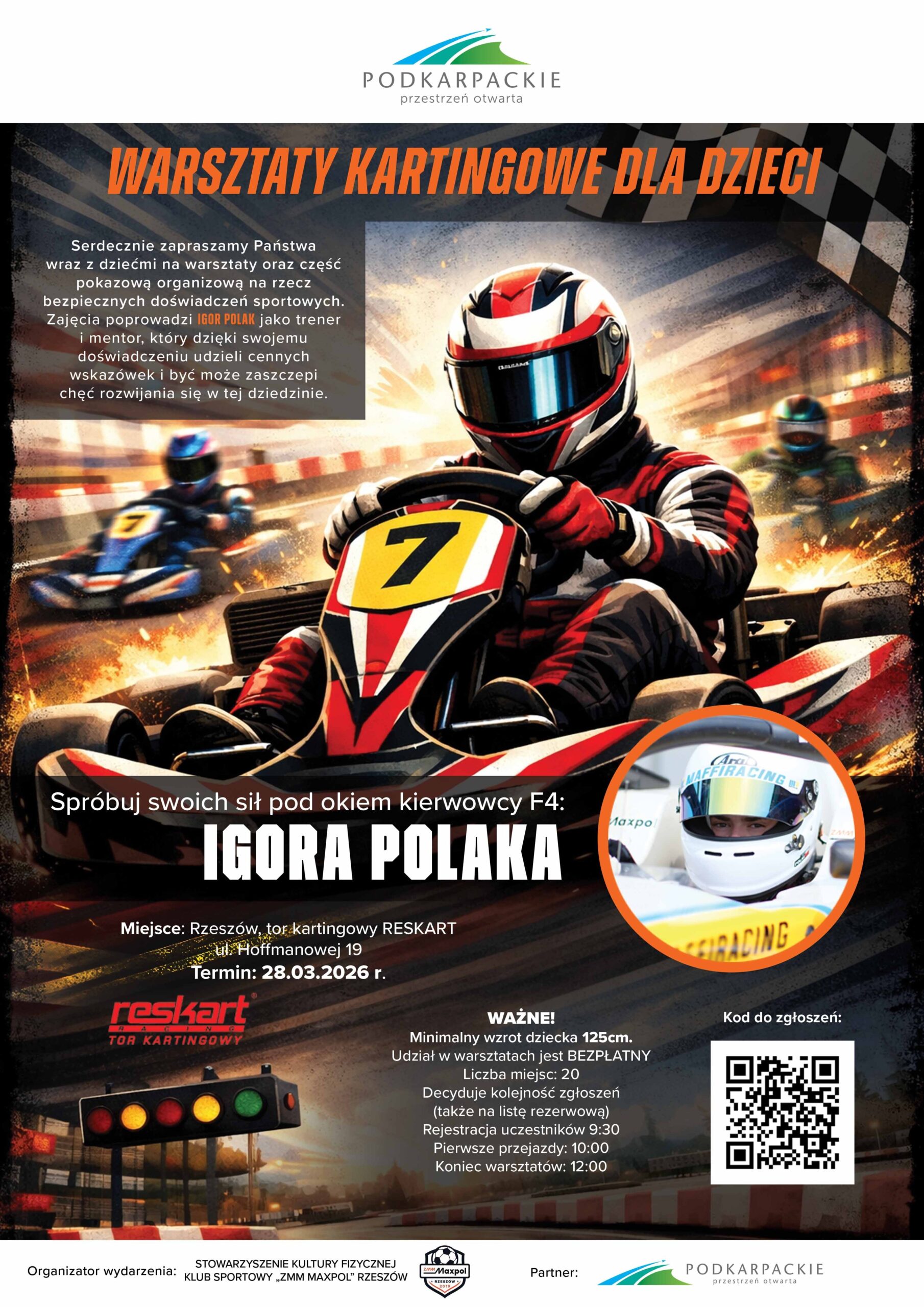 Wyjątkowe wydarzenie W sobotę tor Reskart w Rzeszowie gościł wyjątkowe wydarzenie skierowane dla najmłodszych. W ramach projektu „Podkarpackie. Dobry kierunek na torze. Warsztaty kartingowe dla dzieci prowadzone przez Igora Polaka” młodzi uczestnicy mieli okazję spróbować swoich sił w kartingu...
